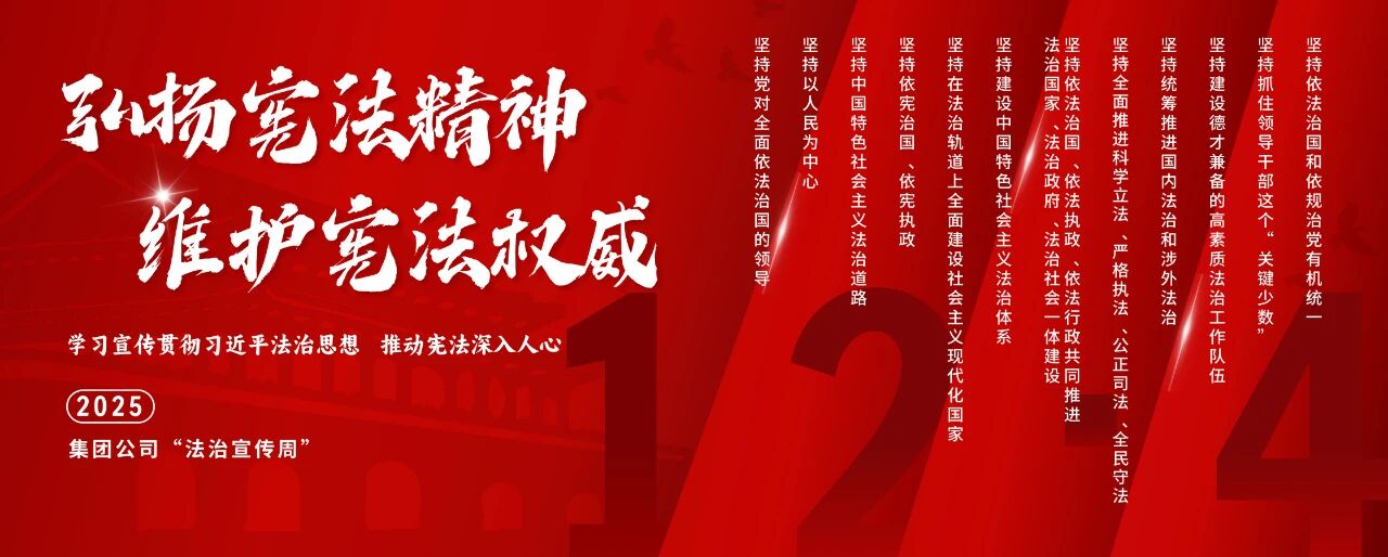 今年12月4日是第十二個國家憲法日。中國船舶集團(tuán)有限公司深入貫徹落實中央宣傳部、司法部、全國普法辦《2025年全國“憲法宣傳周”工作方案》部署要求,以“學(xué)習(xí)宣傳貫徹習(xí)近平法治思想,推動憲法深入人心”為主題,精心組織開展2025年法治宣傳周系列活動。活動將學(xué)習(xí)貫徹習(xí)近平法治思想、習(xí)近平文化思想及憲法精神,與法治央企建設(shè)要求以及集團(tuán)“懸規(guī)植矩 循序善治”特色法治文化深度融合,為加快建設(shè)世界一流船舶集團(tuán)厚植法治土壤、注入強勁法治動能。