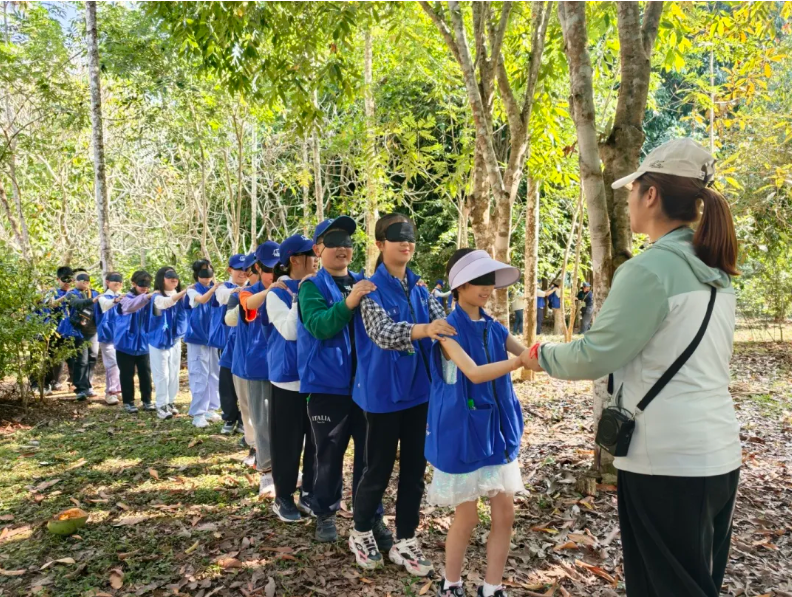 在景洪市天源林、野象谷的人與自然和諧共生之旅,到曼掌村手繪象腳鼓的文化傳承實踐;從大渡崗茶園采茶制茶的勞動體驗,到民族博物館中多民族服飾、歌舞與節(jié)慶文化的沉浸式感悟,這段旅程將生態(tài)保護、文化傳承、勞動教育有機交融,讓年輕心靈在自然與人文的雙重滋養(yǎng)中拔節(jié)生長。